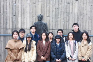 本次读书会以“参观追思”与“研读交流”相结合的形式展开。活动伊始,全体成员在溯园集合,怀着崇敬的心情参观了溯园内关于上海大学(1922—1927)的相关事迹展陈。在庄严肃穆的“李大钊演讲”浮雕前,同学们驻足凝视,感悟革命先驱“铁肩担道义”的精神风范,并合影留念。