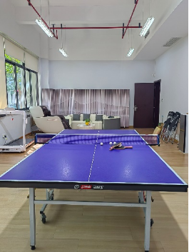在“教工之家”,还有我们的乒乓球活动区域,这里不仅有崭新的乒乓球台,而且还配备了球网和支架,并提供公共乒乓球拍和乒乓球,活动区域较为独立宽敞,欢迎老师们一起相约来参加乒乓球锻炼,相信小小的乒乓球不仅会促进我们的身心健康,而且会加强我们彼此之间的情感联系,增强我们的归属感。