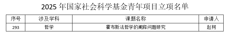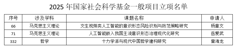 9月29日,全国哲学社会科学工作办公室发表《2025年国家社会科学基金年度项目结果公布》。上海大学马克思主义学院总计5项课题获得立项,其中重点项目1项,一般项目3项,青年项目1项,涵盖理论经济学、马克思主义理论和哲学。此外,9月25日,教育部社科司公示2025年度教育部人文社会科学研究一般项目,我院茅宇凡老师申报的项目入选公示名单。马克思主义学院近年来在申报国家级课题方面,持续取得较好的成绩,充分展现了学院教师潜心笃志的科研实力。 马克思主义学院将继续高度重视科研工作,深入强化有组织科研,立足学术前沿,发挥学科优势,主动服务、对接国家重大发展战略需求,不断提升学院学科建设和总体发展水平。(供稿:归润旻) |