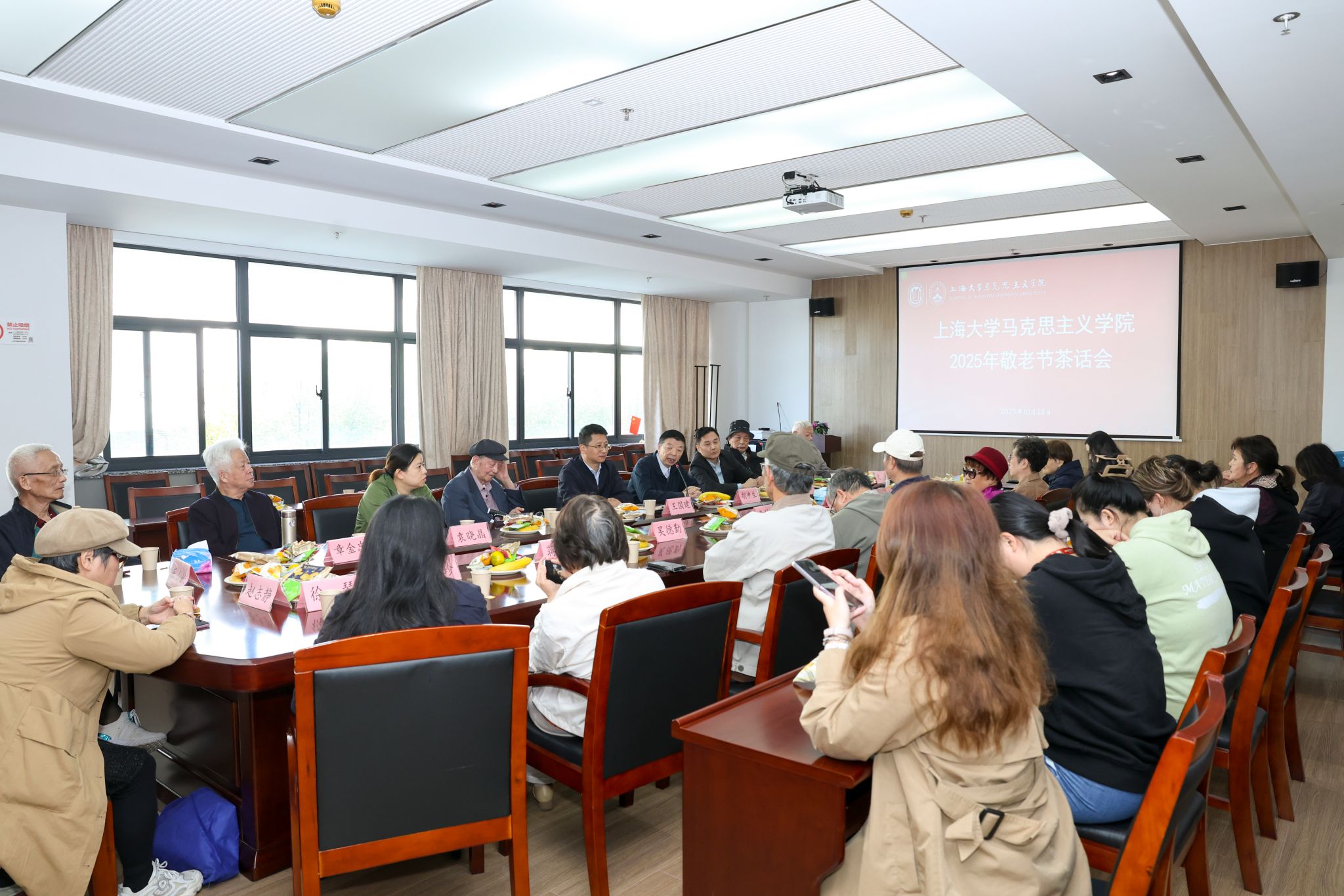 | 10月28日上午,在中国传统佳节重阳节前夕,为弘扬中华民族尊老敬老爱老的传统美德,上海大学马克思主义学院举行2025年敬老节茶话会。离退休老师代表欢聚一堂,共度重阳佳节,共话学院发展。学院党委书记王国建,党委副书记、纪委书记张高峰,挂职副院长袁晓晶等与老教师们同堂交流。茶话会由张高峰主持。