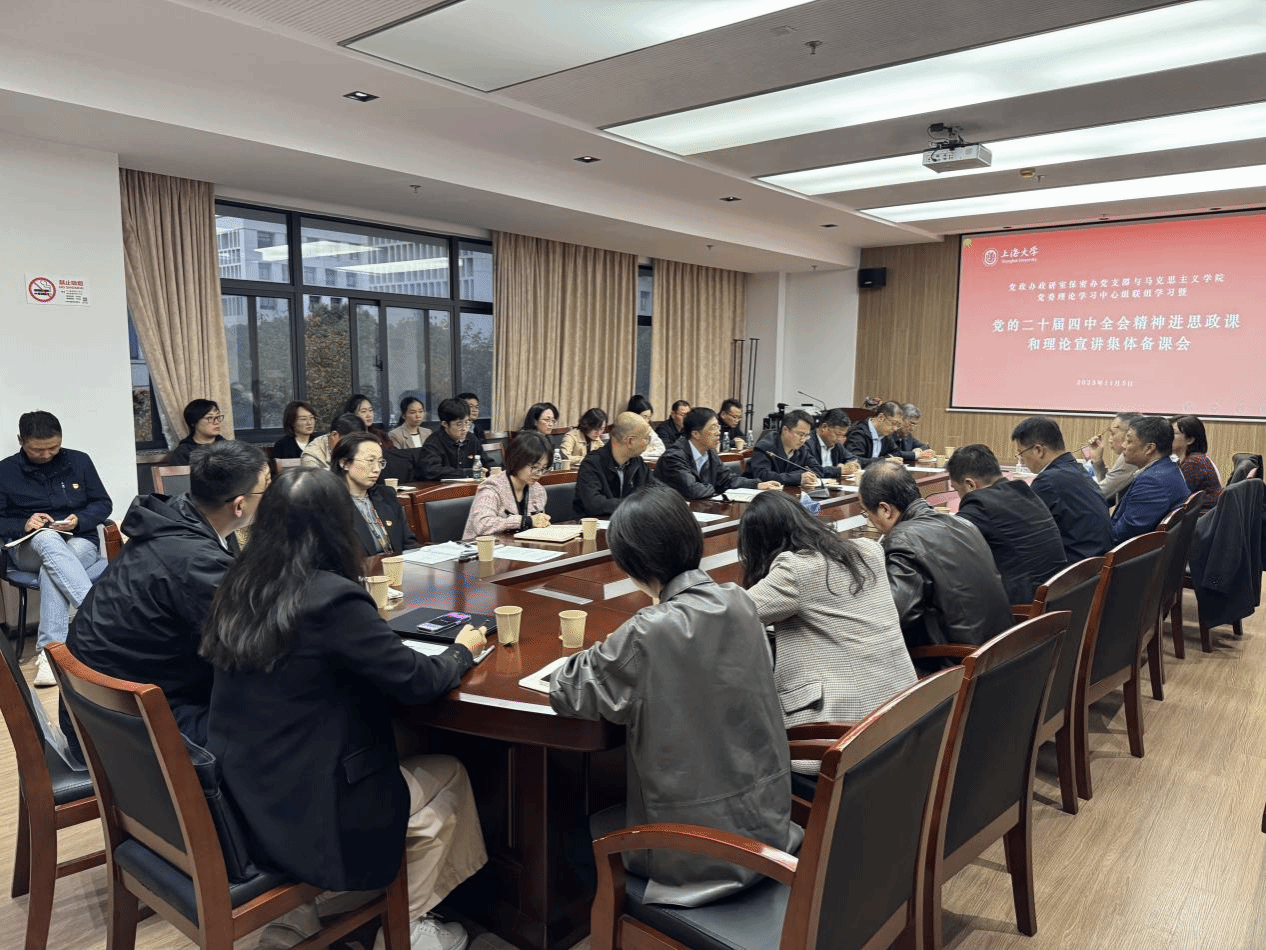 上海市学习贯彻党的二十大精神专家宣讲团成员、上海市委党校汤荣光教授作了题为“奋楫扬帆启新程——学习贯彻党的二十届四中全会精神”辅导报告。他从“全面建设社会主义现代化国家、开创中国式现代化建设新局面、把握新征程上的重大政治任务”三个方面全面系统的解读了党的二十届四中全会的主要内容,并对如何进一步学习贯彻提出了建议。 马克思主义学院副院长高立伟、习近平新时代中国特色社会主义思想概论教研部主任申小翠分别从做好党的二十届四中全会精神的理论宣讲和融入思政课教学角度谈了学习体会。党政办政研室保密办党支部四位同志围绕如何学习贯彻党的二十届四中全会精神这个主题,结合工作实际作了研讨交流。 校党委书记吴坚勇对进一步做好学习贯彻党的二十届四中全会精神,以及推进党的二十届四中全会精神进思政课和理论宣讲提出要求。吴书记指出要把学习贯彻党的二十届四中全会精神作为首要政治任务,在深化理论学习上持续用力。马克思主义学院作为第一学院,将党的二十届四中全会精神深度融入思政课教学与理论宣讲,不但是一项重大的政治任务,更是马院教师必须扛起的时代责任。大家要深学细悟全会核心要义,坚守“为党育人、为国育才”的初心使命,以高度的政治自觉,扎实推进党的二十届四中全会精神进教材、进课堂、进学生头脑,要勇担铸魂育人的职责。吴书记进一步指出,从学校目前的工作来说,深入学习贯彻党的二十届四中全会精神,要结合全国教育大会精神及习近平总书记对上海的重要指示,聚焦上海国际科技创新中心建设,在以系统化改革推进高水平科技自立自强作出上大人应有的贡献。 |