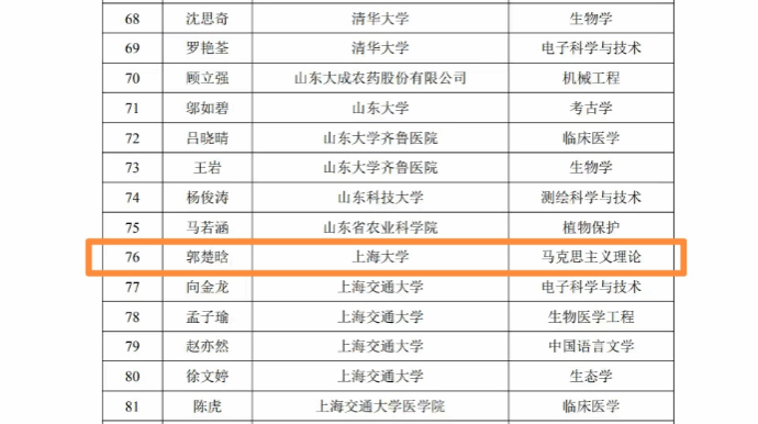 近日,中国博士后科学基金会正式公示了第78批博士后科学基金面上资助拟资助人员名单,全国博士后管委会办公室、中国博士后科学基金会也发布了《全国博士后管委会办公室关于2025年度博士后国(境)外学术交流项目获选结果的通知》,我校马克思主义学院博士后郭楚晗均榜上有名。
